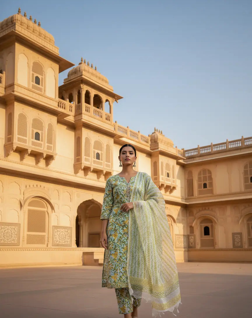 Nestled in the heart of tradition, we celebrate the artistry of Kota Doria weaving, a craft steeped in history and refinement.